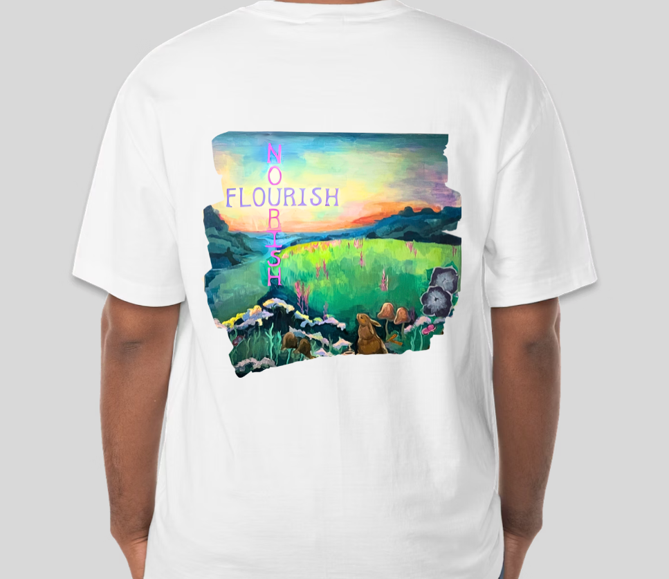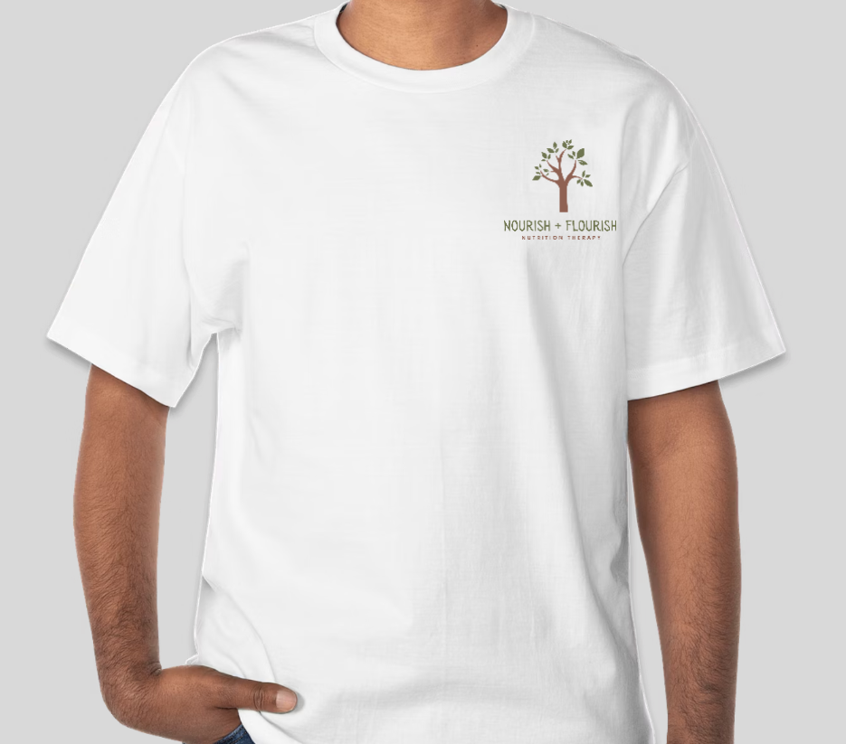 Our Nourish & Flourish t-shirts are perfect for showing your support for health and art. Made from soft, comfy fabric, they are designed to help you feel good while looking great. Each shirt features unique artwork that celebrates our community and wellness. Wear it to the gym, on a walk, or just around the house. Grab your t-shirt now and share your journey with others!